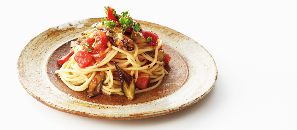 ナスとトマトの冷製パスタ